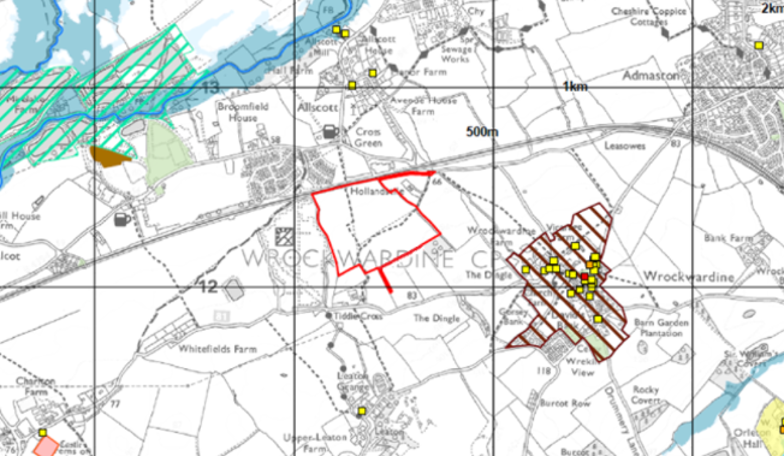 - The site is located on land circa 400m to the north-west of the village of Wrockwardine, which is itself circa 1km to the west of the urban area of Telford.